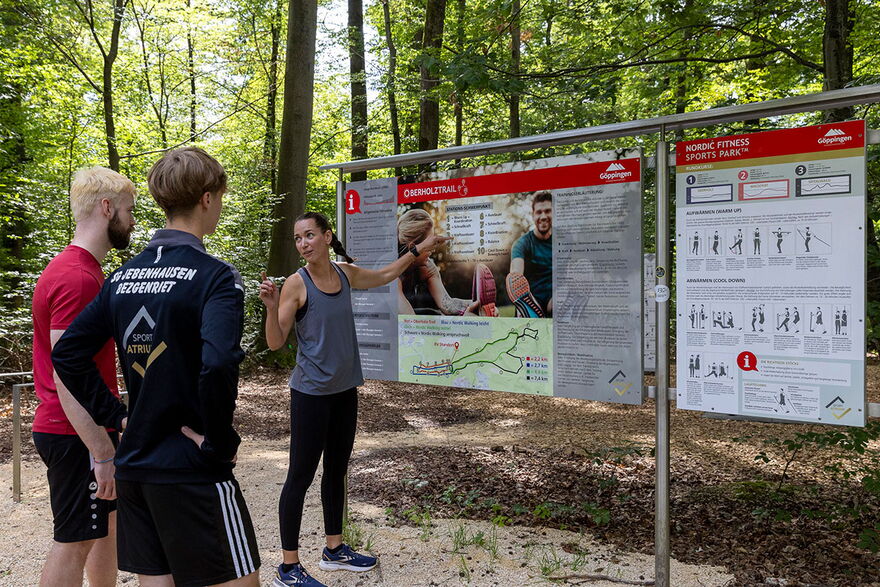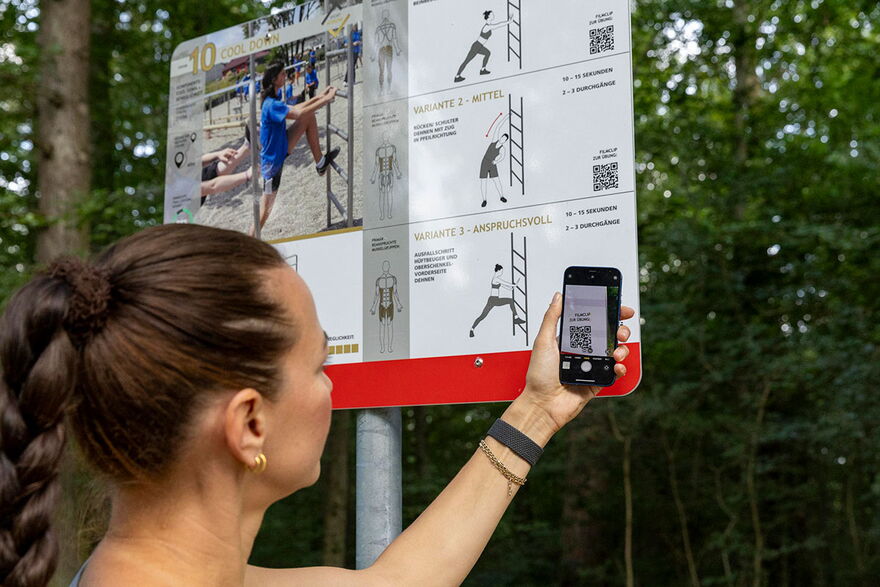 Am Startpunkt befindet sich eine große, erläuternde Überblickstafel. An den einzelnen Übungsstationen finden sich moderne Beschilderungen, welche die korrekte Übungsausführung vermitteln – und dies entsprechend den unterschiedlichen Voraussetzungen der Nutzerinnen und Nutzer. Auf den Schildern befinden sich außerdem QR-Codes, die auf Videos mit dem Übungsinhalt der jeweiligen Station verlinken. Wem die 2200 Meter lange Strecke nicht ausreicht, kann weitere beschilderte Strecken im Waldgebiet nutzen.
