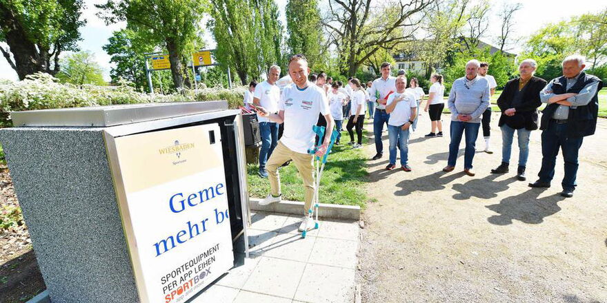 Einweihung der SportBox am Kasteler Rheinufer in Wiesbaden.