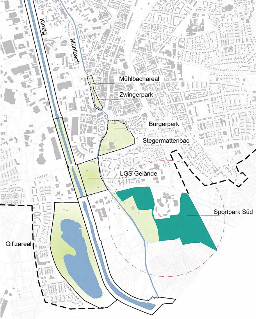 Der Sportpark Süd soll neben den vereinsgebundenen Anlagen öffentliche Freizeitsportelemente erhalten, um Sporttreibenden aller Niveaustufen, Familien und auch Gästen der Stadt ein zusätzliches, sehr attraktives Angebot zu bieten. Mit diesen zusätzlichen Sport-, Freizeit- und Grünelementen wird der Sportpark Süd an die städtische Grün- und Freizeitachse anschließen, die aus dem Ensemble Großer Deich, Mühlbach und Gifizsee besteht und die somit deutlich erweitert wird.